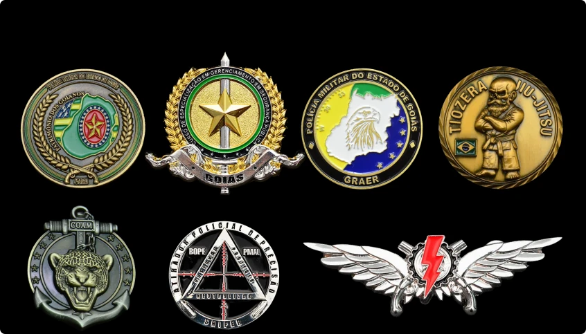Moedas de metal premium, criadas com acabamento premium e design exclusivo, nossas peças são mais do que produtos — são símbolos de honra e reconhecimento.